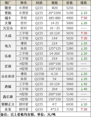 上調(diào)6家,占比24%,調(diào)價幅度10-50元/噸,