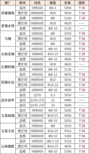 上調(diào)7家,占比70%,調(diào)價(jià)幅度30-50元/噸;