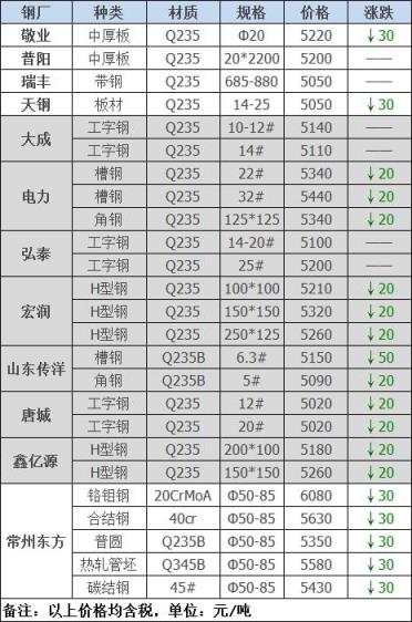 下調(diào)7家,占比63.6%,調(diào)價(jià)幅度10-40元/噸;