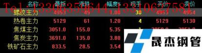 今日螺紋主力期貨漲49,收?qǐng)?bào)4953,漲幅1%;熱卷主力漲61,收?qǐng)?bào)5129,漲幅1.2%;焦煤主力漲155,收?qǐng)?bào)3051,漲幅5.35%;焦炭主力漲135,收?qǐng)?bào)3691,漲幅3.8%;鐵礦石主力漲28.5,收?qǐng)?bào)833.5,漲幅3.54%。
