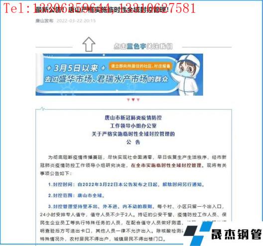 3月22日20時許,唐山發(fā)布《關于嚴格實施臨時性全域封控管理的公告》:自本公告發(fā)布之日起,唐山市實施臨時性全域封控管理。除核酸檢測以及應急突發(fā)事件等特殊情況外,農(nóng)村居民不得出戶,城鎮(zhèn)居民不得出樓門口。