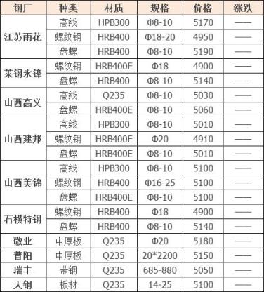 上調(diào)5家,占比29.5%,調(diào)價幅度20-50元/噸,